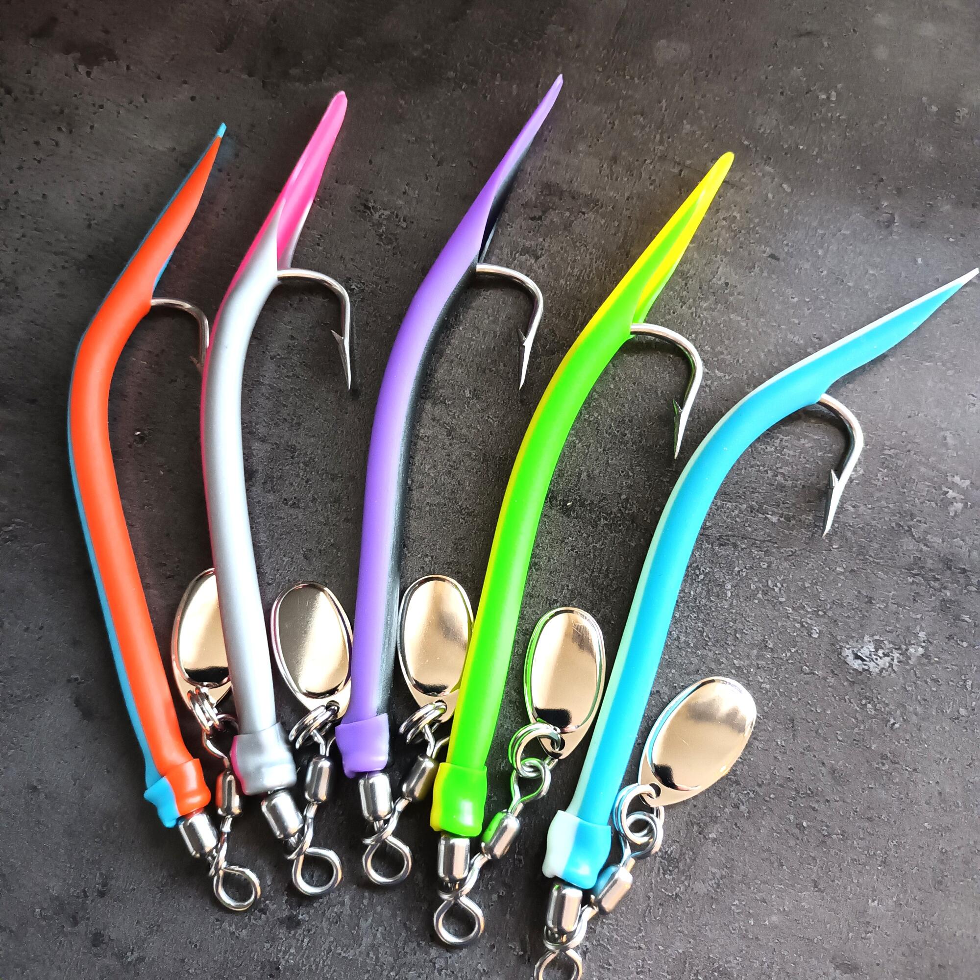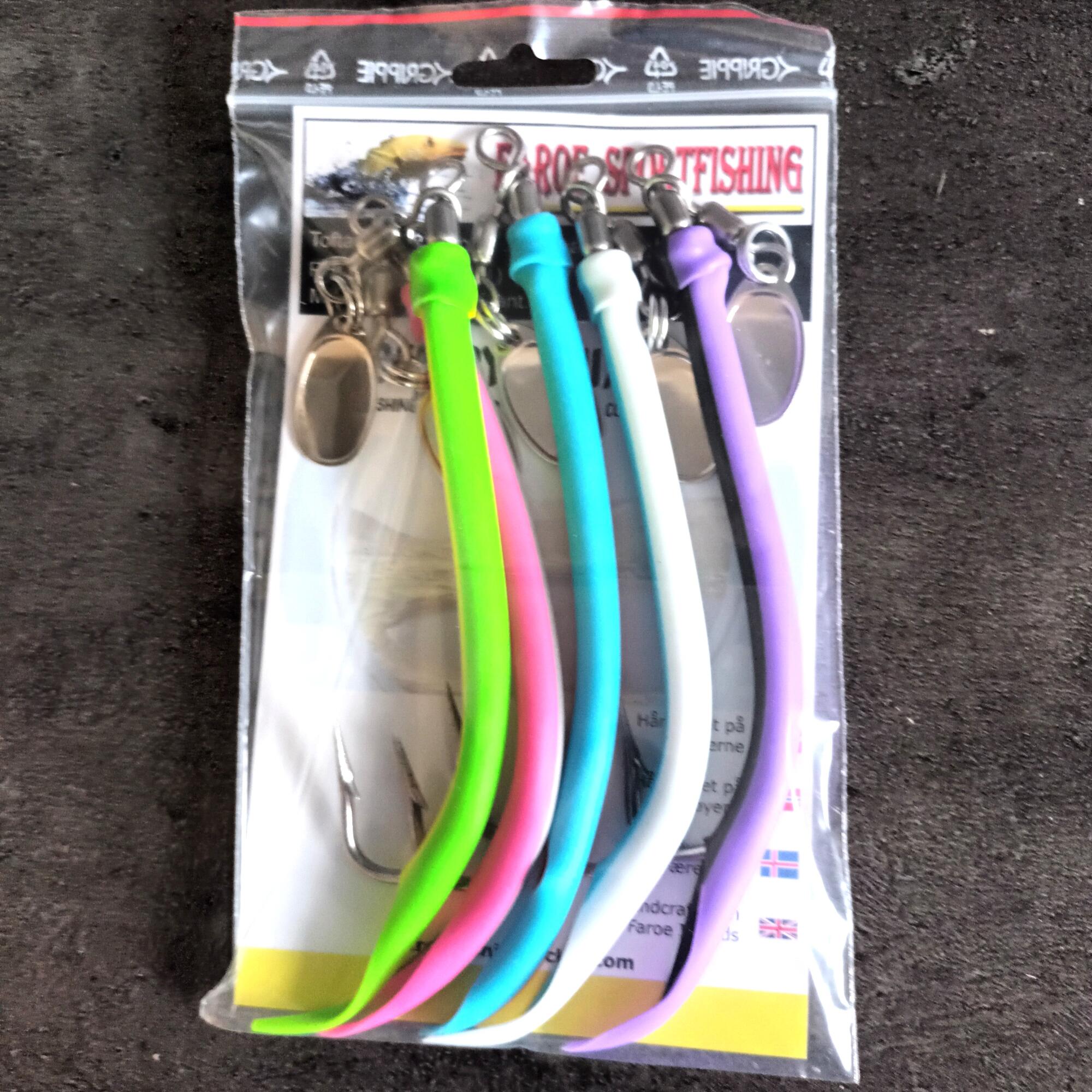 hesir húkar lokka fiskin til dorgina.